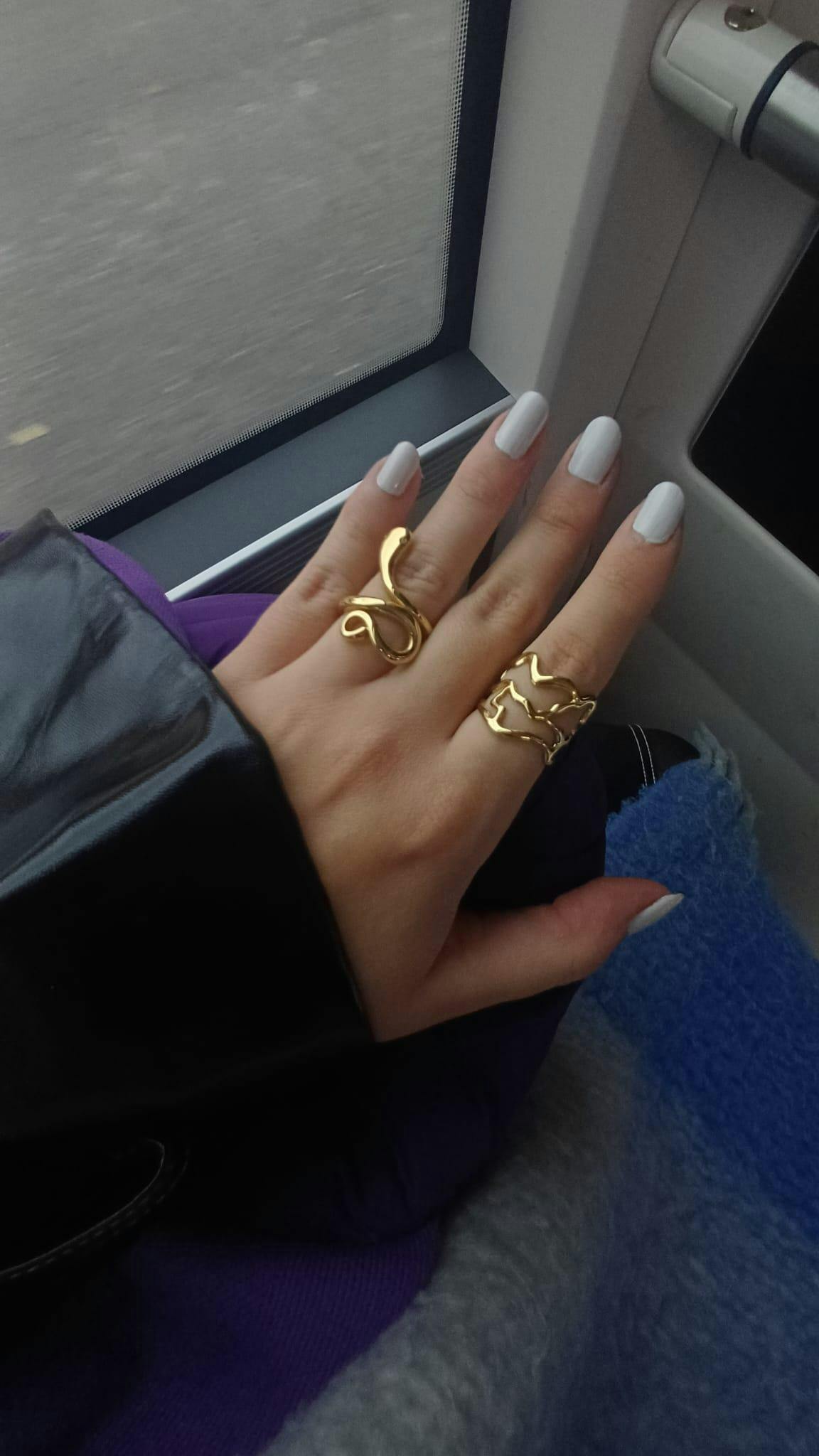 Anillo dorado ajustable de acero inoxidable de la marca DELACABRA con diseño abierto de formas orgánicas y acabado brillante, hipoalergénico